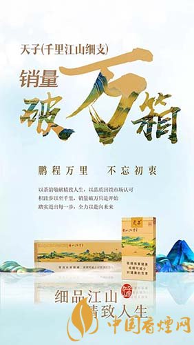 作為重慶中煙自主研發(fā)的最具特色的產(chǎn)品之一,天子(千里江山細(xì)支)擁有獨(dú)特的茶香韻味,一上市便受到消費(fèi)者青睞,市場(chǎng)表現(xiàn)穩(wěn)步向好,截止8月16日,天子(千里江山細(xì)支)2018年全國(guó)商業(yè)銷量超萬箱。下面就由香煙網(wǎng)小編帶大家來了解一下相關(guān)信息。