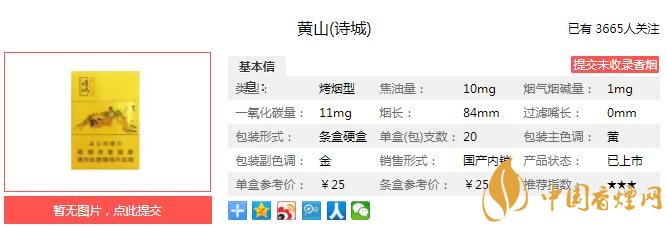 黃山詩城的包裝給人煥然一新的感覺,很符合名字“詩城”的氣質。清淡的煙草本香在唇齒間流轉,比較純凈自然,這款詩城的煙氣之醇、柔在相同檔的價位里應該是屬于上佳水平。經香煙網小編市場調查黃山詩城售價為25元/包。